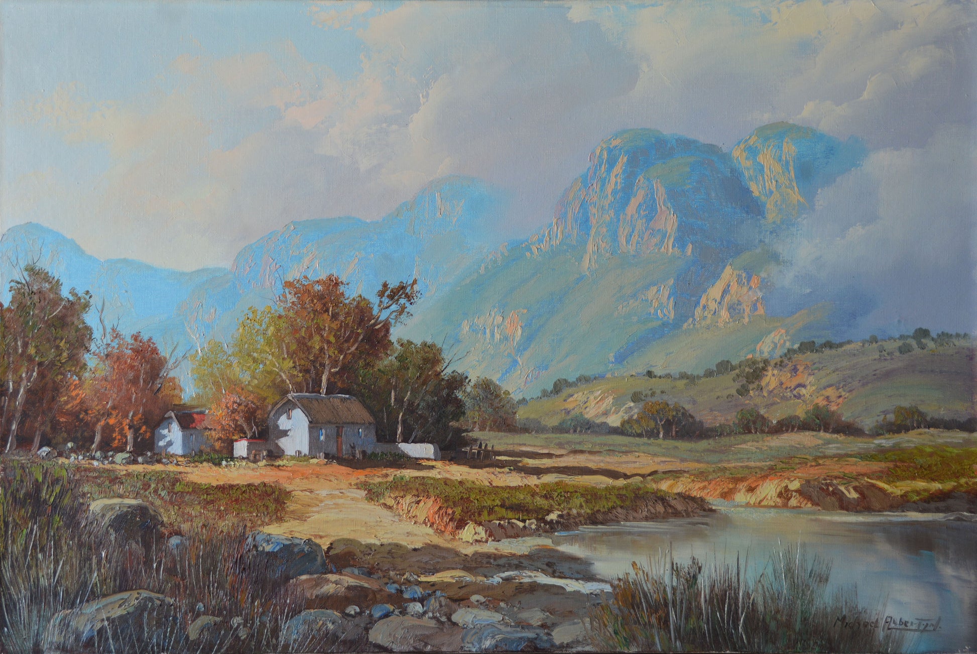 Michael Albertyn, Cape Dutch Farmstead in Cape Mountain Setting, 90x60cm